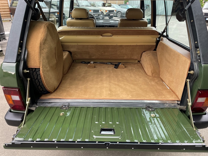 c'est l'un des plus beaux Range Rover que vous trouverez. Ce modèle 2 portes, entièrement restauré, est de couleur vert Ascot avec un intérieur beige clair. Cette combinaison est très rare. Ce Range Rover a bénéficié d'une restauration complète en 2020 et n'a parcouru que 1 200 km depuis. Un suivi complet de la restauration est disponible, avec photos et factures. Il est équipé d'un moteur et d'une boîte de vitesses entièrement refaits à neuf, ainsi que d'une nouvelle peinture, de nouveaux essieux, freins, d'un traitement antirouille, de nouveaux panneaux intérieurs, sièges, etc. La boîte de vitesses LT77 à 5 rapports a été entièrement révisée chez Aschcroft. De nombreuses pièces ont également été thermolaquées.