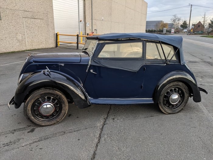 CARROSSERIE & LAKWERK: De auto heeft in het verleden een restauratie ondergaan en beschikt vandaag over een mooie, authentieke patina die perfect bij haar uitstraling past. Het lakwerk verkeert in een nette patina-conditie. De volledige regenset is aanwezig en in goede staat. Wij verzoeken u de foto's aandachtig te bekijken, aangezien deze de staat van het voertuig het beste weergeven. Elk detail is hierin terug te vinden. Bij vragen of indien u extra foto's wenst, kunt u altijd contact met ons opnemen. TECHNISCH: De auto is altijd goed onderhouden, maar heeft de voorbije acht jaar stilgestaan. Ter controle is het voertuig op een correcte manier opgestart met behulp van een externe benzinetank en brandstofpomp. De motor draait goed en rustig zonder bemerkingen. De auto schakelt, remt en rijdt goed. Er is geen verlies van water en de oliedruk is correct. Om veilig en verantwoord opnieuw de weg op te gaan, dient de auto technisch op punt te worden gezet. INTERIEUR: Het interieur verkeert in zeer mooie staat en is grotendeels origineel. De stoelen zijn prachtig, met een combinatie van originele en vernieuwde delen, en tonen een fraaie patina. Het dak is vermoedelijk nieuw en verkeert in goede conditie. Het dashboard is zeer origineel en volledig functioneel. Ook hier adviseren wij de foto's aandachtig te bekijken, aangezien deze een duidelijk beeld geven van de staat. Voor aanvullende vragen of extra foto's kunt u contact opnemen. DOCUMENTEN: De auto is ingeschreven in Belgiƫ en beschikt over Belgische papieren. Er is geen bijkomende documentatie aanwezig. OVERIGE INFORMATIE: De auto wordt te koop aangeboden wegens overlijden. Het betreft een leuke en correcte wagen met een goede basis, zonder grote kosten.