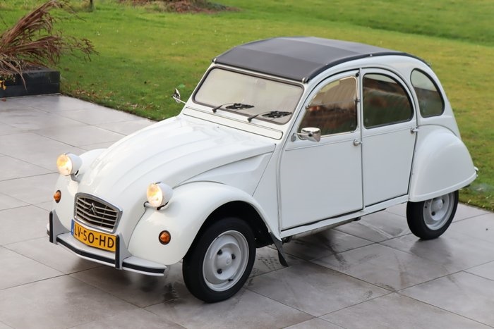 Citroën 2CV6 Special 1985 - origineel Nederlandse auto - uitzonderlijk originele staat - 'Blanc Meije' lakwerk met zwart interieur - 602 cc 2-cilinder (29 pk) - APK geldig tot 11 mei 2027 EXTERIEUR De Citroën 2 CV, ook wel bekend als 'Eend', wie kent deze iconische auto niet? Het door ons aangeboden exemplaar is niet zomaar een Eend, want deze heeft eigenlijk alleen maar pluspunten: origineel Nederlands geleverd, uitzonderlijk origineel en fraai uitgevoerd in de originele witte kleur, waardoor deze zich in een prachtige staat bevindt waarvan u niet snel een tweede zult vinden. De carrosserie is altijd hard geweest en het lakwerk verkeert in een zeer nette staat, met goede passingen van de motorkap, kofferdeksel, portieren, dorpels en spatborden. De originele puntlassen zijn nog zichtbaar! De kleurcode 'EWT' staat voor 'Blanc Meije' en betreft een fraaie klassieke witte kleur. Het is bijzonder dat deze originele kleurcode nog zichtbaar is onder de motorkap. Vrijwel alle ramen zijn nog origineel. Het dak kan naar achteren worden geschoven, zodat ook van de zon en de buitenlucht genoten kan worden. Ook de verlichting, het chroomwerk en de rubbers verkeren in een nette en frisse staat. INTERIEUR Ook het interieur is zeer origineel en is uitgevoerd in een fraaie zwarte stoffen bekleding. Uiteraard bevindt ook deze zich in een goede staat. Ook de kofferruimte is nog hard, gaaf en origineel en deze ruimte biedt plaats aan het reservewiel. TECHNISCH De 602 cc motor levert 29 pk en is gekoppeld aan een handgeschakelde 4-versnellingsbak. De onderzijde van de auto is zeer hard en gaaf, zoals ook te zien is in de fotoreportage. De velgen zijn rondom voorzien van Michelin banden. De auto rijdt zoals het hoort: comfortabel en speels. De laatst uitgevoerde APK is geldig tot maar liefst 11 mei 2027. Dankzij het bouwjaar van 1985, betreft het in Nederland een oldtimer. Direct betaalbaar rijden en genieten dus!