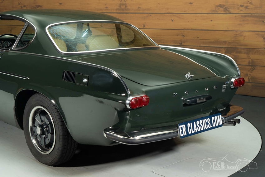 Donkergroene Volvo P1800 E te koop Het exterieur is uitgevoerd in stijlvol donkergroen lakwerk dat de elegante lijnen van de P1800 prachtig benadrukt. In combinatie met de klassieke Minilite-stijl lichtmetalen velgen oogt de auto sportief en period-correct. Het interieur is afgewerkt in een warm bruin kleurenschema, dat mooi contrasteert met het exterieur en zorgt voor een chique, klassieke uitstraling. De prachtige bekleding, het karakteristieke dashboard en de harmonie tussen lakwerk en interieur maken deze Volvo tot een bijzonder aantrekkelijke klassieker voor de echte liefhebber.