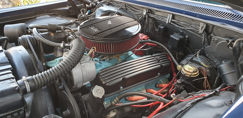 De auto is technisch recent serieus aangepakt. De 398 CI V8 (4-barrel, ±303 pk) is volledig gereviseerd door een specialist.