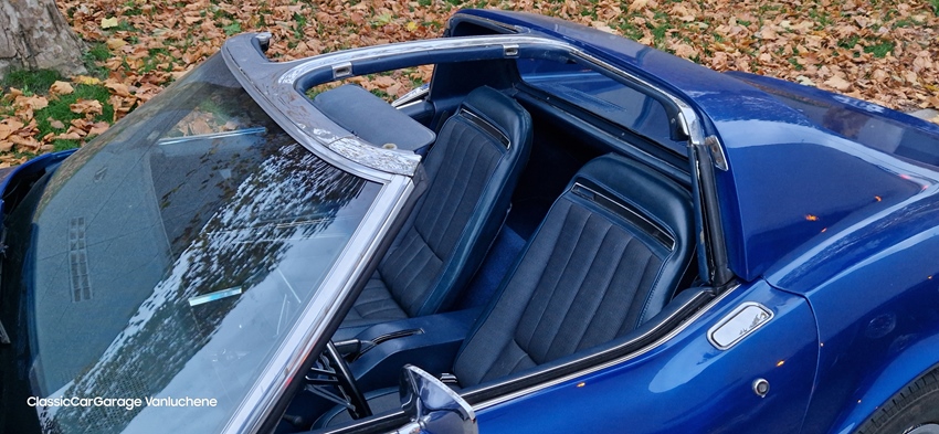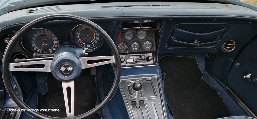 1973 C3 Corvette, donkerblauw metallic met blauw vinyl interieur in zeer goede staat.