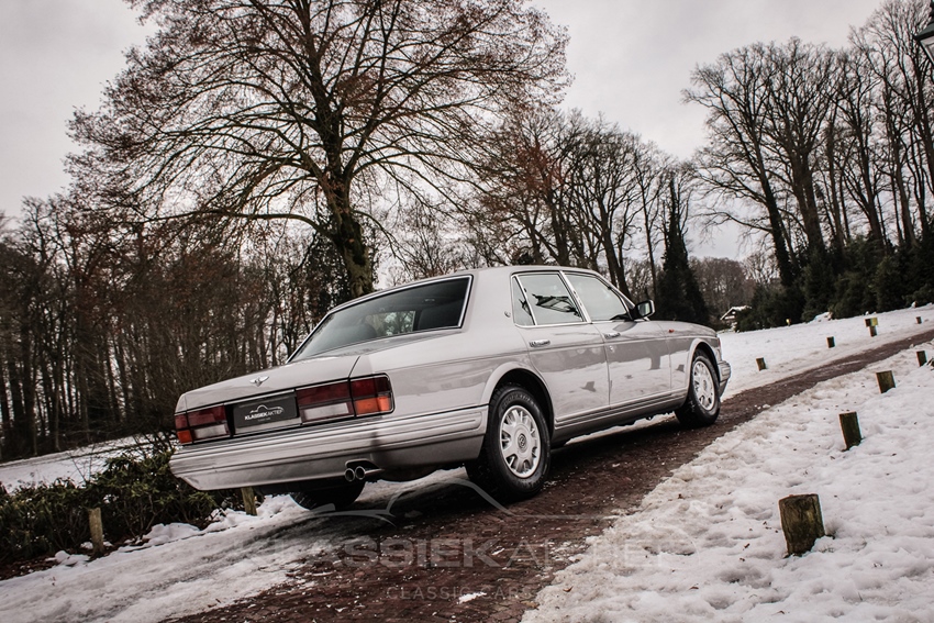 Het stijlvolle en exclusieve merk Bentley staat onder andere bekend om de productie van luxueuze royal-class limousines, waaronder ook de indrukwekkende Bentley Brooklands. Als opvolger van de Bentley Eight en Mulsanne S werd deze stijlvolle vier-deurs limousine in 1992 geïntroduceerd. Kenmerkend voor de Brooklands waren de dubbele koplampen, de klassieke Bentley grille en het hoekige design. Deze schitterende Bentley Brooklands is in 1996 oorspronkelijk geleverd in Duitsland door de Bentley/Rolls-Royce dealer in Düsseldorf. Daar is de auto ook lange tijd in onderhoud geweest, gelet op de afgestempelde servicebeurten in het aanwezige servicebook. In 2008 is deze Bentley naar Nederland gekomen en heeft sindsdien twee eigenaren gehad, die de auto met zeer veel liefde en zorg hebben onderhouden.