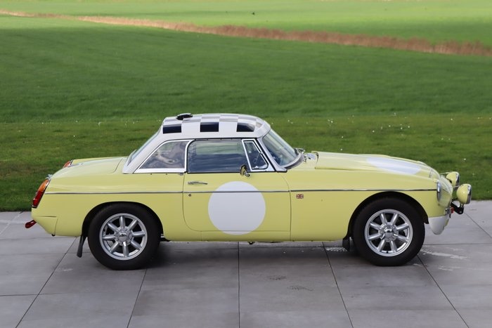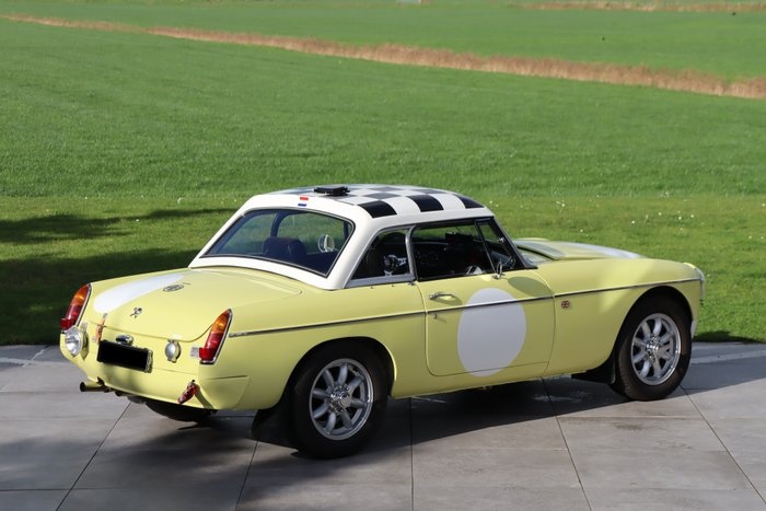 MG C Roadster Overdrive 1968 - 'Body-off' gerestaureerd - Rally prepared - Eenvoudig in twee uitvoeringen te berijden (rally of standaard) - Polyester hardtop - Luxueuze softtop van stof - Vele technische updates - Uitvoerige documentatie - 2,9-liter 6-cilinder motor - Zeldzaam: 4.542 MG C Roadsters gebouwd - Al bijna 20 jaar in bezit van dezelfde eigenaar HISTORIE/DOCUMENTATIE Deze MG C Roadster begon zijn leven op 18 juli 1968 in de Verenigde Staten. In 2002 is hij geïmporteerd naar Nederland, waar hij vervolgens compleet 'body-off' gerestaureerd is. Hiervan is een fotoreportage aanwezig. In 2006 is de MG in bezit gekomen van de huidige eigenaar, die kosten noch moeite heeft gespaard om de auto te prepareren voor het rijden van rally's. Zowel technisch als optisch is de auto verbeterd, maar ook is hij relatief eenvoudig terug te brengen naar de originele staat. Bij de auto is een prachtige met stof bekleedde map aanwezig met veel documentatie waaronder taxatierapporten, onderhoudsfacturen, onderdelencatalogussen en een trimcatalogus. De laatste eigenaar heeft de auto gebruikt voor zowel het rijden van rally's als voor vakanties: door het monteren van de softtop en kofferklep met bagagerekje wordt de auto eenvoudig getransformeerd van een sportieve rally-auto tot een heerlijke, praktische toerauto. EXTERIEUR Een sportieve verschijning: een subtiele kleur geel (Primrose Yellow) van het lakwerk, de welbekende 'Mini-Lite' lichtmetalen velgen met centrale wielmoer, een 'Sebring' frontspoiler en natuurlijk het ontbreken van de chromen bumpers en de toevoeging van stickers, wat het tot een echte rally-auto maakt. Uiteraard zijn de originele onderdelen bij de auto aanwezig, zoals de chromen bumpers, frontlip en stoelen. Zowel de opvallende zwart-wit geblokte polyester hardtop als de zwarte stoffen softtop verkeren in goede staat. De carrosseriedelen sluiten correct op elkaar aan. Ook de ruiten, rubbers en het chroomwerk verkeren in goede staat. Er zijn slechts lichte gebruikerssporen. Aan de voorzijde pronken 4 Cibie mistlampen/verstralers en aan de zijkant de 'Union Jack' emblemen. Aan de achterzijde zijn extra mistlichten en spatlappen gemonteerd. De koplampen beschikken over beschermkappen. Verder zijn meerdere gordels (3-punts en 4-punts), een afdekhoes voor de softtop, een extra kofferklep met bagagerekje en een roll-bar bij de auto aanwezig. INTERIEUR Het zwarte interieur is momenteel voorzien van rallystoelen. De originele skai-lederen stoelen zijn bij de auto aanwezig. De bekleding verkeert in goede staat. Er is een sportief met leder bekleed Moto-Lita stuur en aluminium versnellingspook gemonteerd. Daarnaast zijn extra meters gemonteerd voor bijvoorbeeld de accuspanning en triptellers. Andere upgrades zijn een op het dashboard bedienbare claxon, USB-poorten, 12-volt aansluitingen, een massa-schakelaar en een digitaal kompas. In de bagageruimte bevindt zich gereedschap, een reservewiel en een brandblusser. TECHNISCH Een genot om mee te rijden: de originele 2,9-liter 6-cilinder lijnmotor produceert een prachtig geluid en laat zich bedienen door de handgeschakelde versnellingsbak, die ongeveer 4 jaar geleden nog gereviseerd is. De overdrive zorgt voor een prettige '5e versnelling'. De motor verbruikt geen olie, is goed afgesteld en heeft geen last van warmte. Er zijn veel technische upgrades uitgevoerd waaronder: Koni schokbrekers, speciale remmen, twee maal een elektrische brandstofpomp, Weber carburateurs, een RVS uitlaat, een spaghetti spruitstuk, een speciaal inlaat spruitstuk, elektrische ontsteking en een nieuw type dynamo. De 15 inch velgen beschikken over goed Goodyear 4-seizoensbanden. De auto rijdt zeer goed, dus of de auto nu gebruikt wordt voor het rijden van rally's, tourritten of vakantie: deze MG is bij uitstek geschikt.