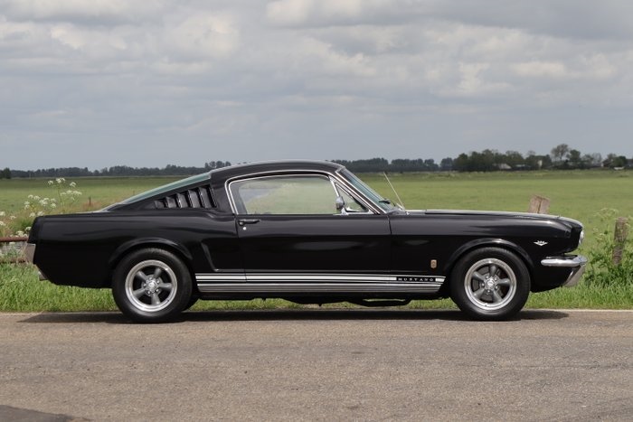 Ford Mustang Fastback 1966 - Sinds 2023 ruim € 16.000,- geïnvesteerd - 'Raven black' lakwerk met witte racestrepen - Zwart 'Pony' interieur - Krachtige "289" (4.7-liter) V8-motor met automatische versnellingsbak - Rally pack - Op maat gemaakte RVS uitlaat - Snel-sluiting motorkap - Optionele mistlampen voorzijde - Gordels voor en achter - Airconditioning HISTORIE/DOCUMENTATIE Deze legendarische Fastback begon zijn leven op 15 september 1966 in de Ford-fabriek in Metuchen, New Jersey (Verenigde Staten). In 2023 is hij geïmporteerd naar Nederland. In het verleden is de auto deels gerestaureerd en hierdoor verkeert hij in een goede staat, blijkt ook uit het taxatierapport uit 2023 waarin de auto als klasse 2 (zeer goed) wordt omschreven. Technisch is de Ford uitstekend onderhouden, waarvan vele facturen aanwezig zijn. Door een gespecialiseerd bedrijf is de Mustang uitvoering onder handen genomen waarbij diverse upgrades zijn uitgevoerd. EXTERIEUR De 1966 Fastback is waarschijnlijk de mooiste Mustang ooit gebouwd en wordt door veel liefhebbers geroemd. Dit is exemplaar is zeer fraai en stoer uitgevoerd: zwart lakwerk ('Raven') met witte racestrepen. Het lakwerk is ca. 20 jaar oud en heeft een diepe glans, met gebruikerssporen en imperfecties. De portieren hebben kleine roestplekjes. Velgen maken de auto, en dus zijn fraaie 15" 'American Racing' velgen gemonteerd. De passingen van de carrosserie zijn mooi en het chroomwerk verkeert in goede staat. De ramen rondom zijn getint. De voorruit is vernieuwd en voorzien van een zonnefilter. INTERIEUR Het zwarte Pony-interieur verkeert nog in goede staat. De bekleding is uitgevoerd in zwart skai-leer. De bestuurders kijkt uit over het kenmerkende houten/aluminium stuurwiel en diepe wijzertellers. Ook is er een 'rally pack gauge cluster set' geplaatst met een tachometer en klokje. De originele Ford radio is nog aanwezig. Het dashboard en de instrumenten verkeren in goede staat. Ook de paneel- en hemelbekleding en vloerbekleding verkeren in goede staat. De airconditioning is bijgevuld. interieur vormt een ideale combinatie van comfort, originaliteit en klassieke looks. Bovendien is de Mustang een 2+2, waardoor 4 personen kunnen genieten van de rijervaring van de Mustang. TECHNISCH Technisch verkeert de Mustang in topstaat: door een specialist is de auto grondig onder handen genomen. Naast reguliere onderhoudswerkzaamheden zijn bijna alle leidingen en slangen vernieuwd, diverse delen van de wielophangingen zijn vernieuwd, de schokdempers aan de achterzijde zijn vernieuwd, vloeistoffen en filters zijn vernieuwd en de verlichting is aangepast naar Europese regelgeving. De auto beschikt over stuur- en rembekrachtiging. De '289' 4.7-liter V8-motor levert 225 pk en loopt en klinkt fantastisch. Het uitlaatsysteem is vervangen door een op maat gemaakt systeem met chromen uiteinden. De banden zijn vernieuwd en zijn in goede staat. De automatische versnellingsbak schakelt soepel en naar behoren en het is een feest om met de Mustang te rijden. ALGEMEEN De Ford Mustang is waarschijnlijk de meest iconische auto ooit gebouwd, en werd gebouwd vanaf 1965. De eerste generatie werd gebouwd als traditionele coupé en cabriolet, maar ook als Fastback. Deze Fastback heeft een aflopende daklijn die doorloopt tot aan de achterkant van de auto, terwijl de coupé een meer traditionele, hoekige achterkant heeft met een kofferklep. De sportievere look van de fastback is de meest begeerde uitvoering en wordt gekenmerkt door zijn ventilatieopeningen achter de zijruiten, die onderdeel zijn van het 'silent-flow'-interieurventilatiesysteem. De auto accelereert in iets minder dan 8 seconden van 0 naar 100 km/u en heeft een topsnelheid van ca. 193 km/u. De eerste generatie Mustang werd gebouwd tot 1973. De Ford Mustang Fastback is nog altijd een populaire klassieke auto, vooral bekend om zijn gestroomlijnde design en krachtige prestaties. Met name de Fastback-versie is een gewilde variant onder verzamelaars. Word net als veel anderen verliefd op deze perfecte uitvoering van de legendarische Mustang!