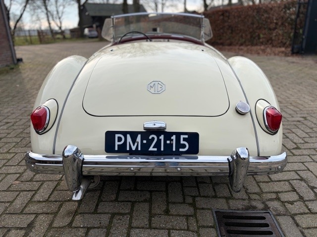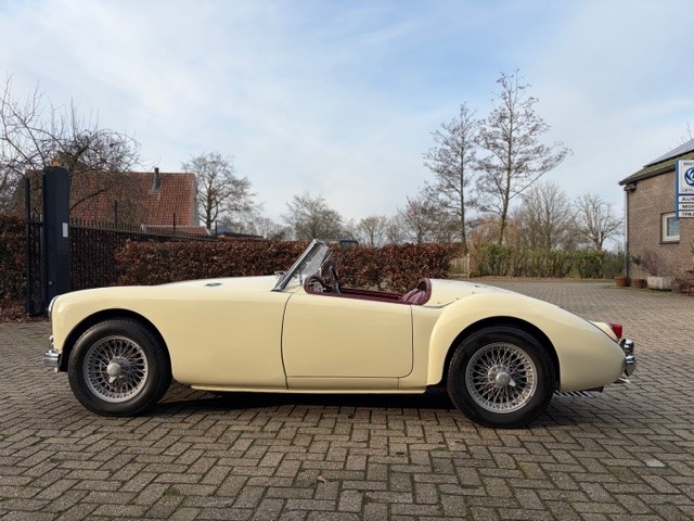Prachtige, recent gerestaureerde MGA 1500 uit 1956. Deze schitterende MG is gespoten in Old English White en is tussen 2019 en 2023 volledig gerestaureerd volgens de fabrieksspecificaties. Veel originele details zijn behouden gebleven. De restauratie vond plaats in Nederland, vlakbij, met uitsluitend de beste beschikbare onderdelen. Deze MGA is van de grond af opnieuw opgebouwd. Het chassis en de carrosserie zijn professioneel gerestaureerd en opnieuw gespoten. Het dashboard is eveneens wit gespoten, zoals de fabrieksspecificaties voorschrijven. De motor en versnellingsbak zijn uiteraard volledig gereviseerd en verkeren beide in perfecte staat. Het interieur is afgewerkt met rood leer, passend bij de Old English White lak. Zoals u kunt zien, is het interieur nieuw en daardoor in zeer nette staat. Een nieuwe rode tapijtset is gemonteerd. Een origineel 4-spaaks stuurwiel completeert de klassieke cockpit. Het chroomwerk rondom is opnieuw verchroomd, dus van de hoogste kwaliteit. De auto is voorzien van Dunlop MWS spaakwielen met nieuwe banden. Wederom de beste kwaliteit die er te koop is. De auto heeft geen softtop, maar een zwarte mohair afdekhoes om de cockpit af te sluiten. Eenvoudig en effectief! Na de restauratie heeft de MGA slechts ongeveer 1000 kilometer gereden. Bij de auto wordt een grote map geleverd met foto's en facturen van de restauratie, evenals een erfgoedcertificaat.