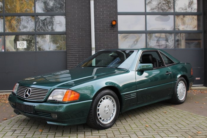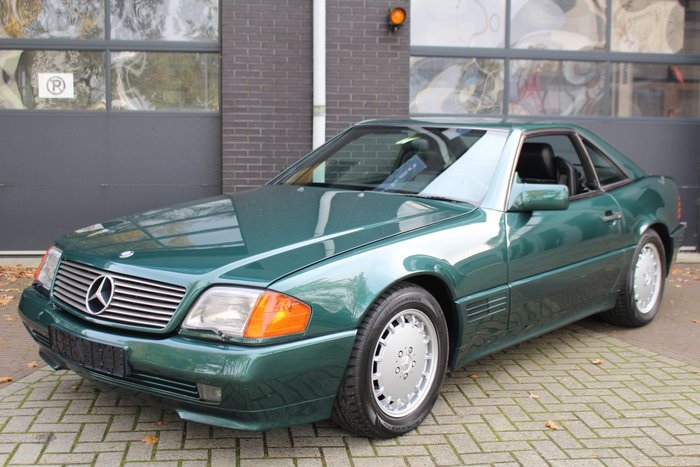 Mercedes-Benz - SL500 - 1989 Technisch: De motor loopt netjes, start direct en is rookvrij. Deze Mercedes SL500 is afkomstig uit een verzameling en is tot en met 2021 jaarlijks gekeurd in Belgiƫ. Enkele jaren geleden is de auto door de eigenaar voorzien van nieuwe remleidingen. Het stuurhuis is in 2017 gereviseerd. Omdat de auto uit een collectie komt en de laatste jaren weinig is gebruikt, is het aan te raden eerst een grote onderhoudsbeurt uit te voeren alvorens er actief mee te gaan rijden. Interieur: Het interieur is geheel origineel en toont zich goed. De auto is uitgevoerd met originele lederen bekleding en betreft een uitvoering met vrijwel alle opties die destijds voor een SL leverbaar waren. De motorruimte en kofferruimte verkeren in goede, originele conditie. Het dashboard ziet er strak en verzorgd uit. Exterieur: Het exterieur is recent volledig hoogglans gepolijst en de groene lak toont zich nog erg goed, zoals te zien is. Uiteraard zijn er na 40 jaar hier en daar lichte gebruikerssporen aanwezig. De deursponningen zijn netjes. Begin 2010 is de auto volledig opnieuw gespoten bij een erkende spuiterij. De hardtop verkeert in goede conditie. Chassis: Het chassis is hard en strak. Wielkasten, deursponningen en dorpels verkeren in goede, originele staat. De hardtop geeft zich momenteel niet vrij; dit dient nagekeken te worden. Het cabriodak is intact en in goede staat. Het linkerraam wil momenteel niet omhoog. De kilometerstand is hoger dan op de teller zichtbaar is; deze modellen stonden bekend om defecte kilometertellers. Ook bij deze SL is volgens de vorige eigenaar eind 2010 een nieuwe kilometerteller geplaatst. Documenten: De auto wordt geleverd met complete Belgische registratiepapieren. Afhaling: De Mercedes is af te halen in Hardenberg, Nederland.