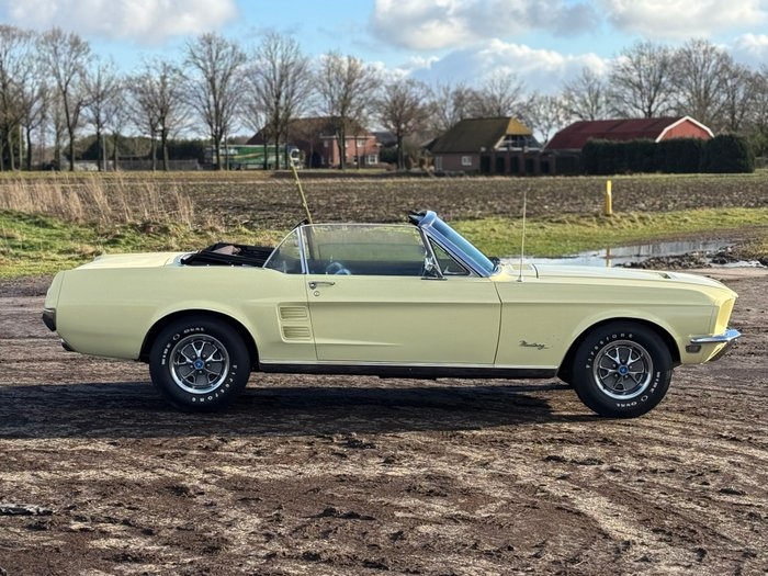 ALGEMEEN: Een icoon. Tijdloos. In deze staat zeldzaam. Schitterende Ford Mustang Cabriolet uit 1967. Na gehele restauratie slechts 1725 miles gereden. Deze Mustang ademt jaren '60 Americana: de elegante lijnen, het karakteristieke front, het prachtige V8 geluid en natuurlijk de cabriolet uitvoering voor puur rijplezier. De restauratie is met zorg en oog voor originaliteit uitgevoerd, waarbij de klassieke uitstraling volledig behouden is gebleven. Deze auto is dus géén project of compromis, maar een instapklare klassieker voor de liefhebber die waarde hecht aan originaliteit, uitstraling en rijbeleving. Tevens zeer geschikt als investering. CARROSSERIE & LAKWERK: Carrosserie ziet er keurig uit. Is gerestaureerd en opnieuw gespoten. Kloppend lijnenspel en vrij van roest. Lakwerk in keurige conditie. Het Pony embleem op het rechtervoorspatbord mist. TECHNISCH: Loopt, rijdt, remt en schakelt naar behoren. De gehele aandrijving is gereviseerd, van motor tot achteras. Vele aanbouwdelen zijn nieuw zoals de uitlaat en de brandstoftank. Je zult hiermee direct aan het verkeer kunnen deelnemen. Koude start kan beter, wellicht afstelling carberateur/choke. INTERIEUR: Ziet er keurig uit. Is gerestaureerd met behoud van originaliteit. Alle meters zijn werkend. Radio is werkend. DOCUMENTEN: Voorzien van Amerikaans kenteken. Invoerrechten zijn betaald waarvan documentatie aanwezig is. AFHALING: Afhalen kan in Ter Apelkanaal. Uiteraard kan er meegedacht worden over transport door geheel Europa.