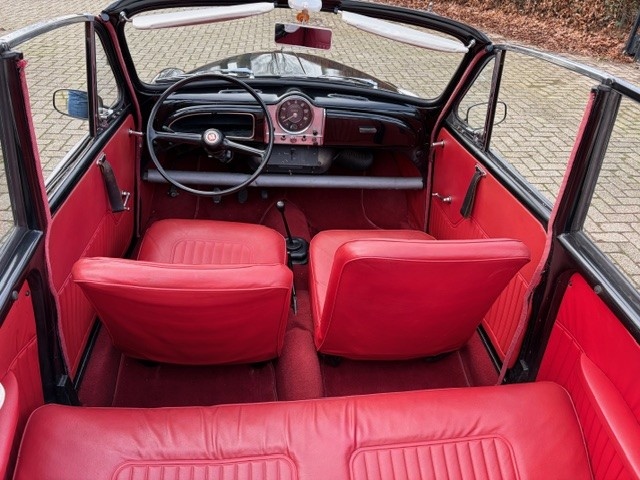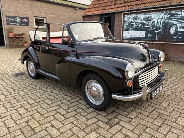 What a marvelous classic we have here, an original Dutch delivered Morris Minor Open Tourer from 1966 in black. This car is an original factory convertible, so not a converted saloon. It's in very nice condition. It's a very hard an solid car with hard an solid floors and great technics, it's paintwork is very nice, no rust and dents, maybe some tiny imperfections as you can expect due to its age. The engine purrs like a Minor always does, the recognisable 50's and 60's Morris Minor sound. The engine and gearbox are in excellent condition, the car is fresh maintained , exhaust and brakes are just renewed. The car is full MOT free due to its age now. The interior is in excellent condition, maroon red as standard with a matching fresh carpet set. The car has a very good maroon red vinyl softtop fitted and a white vinyl hood cover.