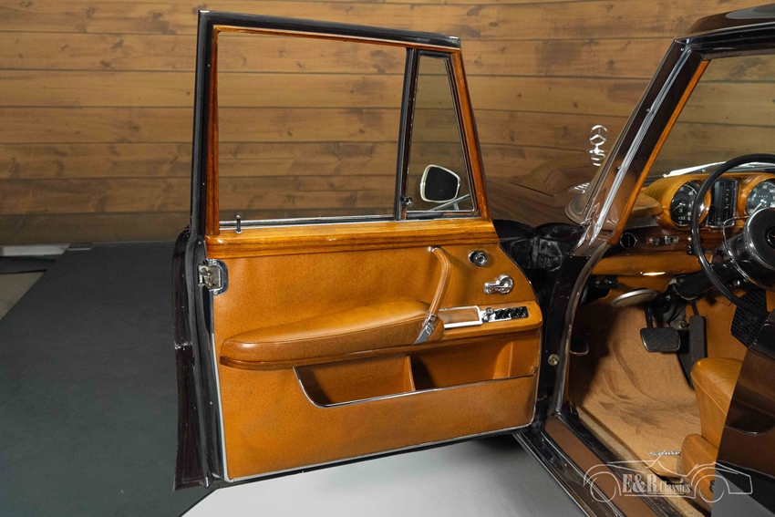 Donkerbruine Mercedes-Benz 600 te koop Ook uiterlijk en interieur ademen exclusiviteit. Het diepe, donkerbruine lakwerk combineert prachtig met de klassieke lijnen en originele Mercedes wieldoppen. Binnenin wordt u verwelkomd door een luxueus lederen interieur in cognac/tan, rijk afgewerkt met wortelnotenhout fineer. Het centrale hogedruk-hydraulische systeem bedient ramen, stoelen en portieren, inclusief hydraulische soft-close portieren, terwijl de originele airconditioning zorgt voor extra comfort. Verder is de auto uitgerust met een Sennheiser (Senn Sound) audio-bedieningsunit en een originele Becker Grand Prix radio. Privacygordijnen in het achtercompartiment maken het geheel compleet en benadrukken het statige, representatieve karakter van deze Mercedes-Benz.