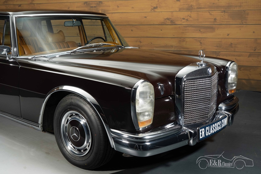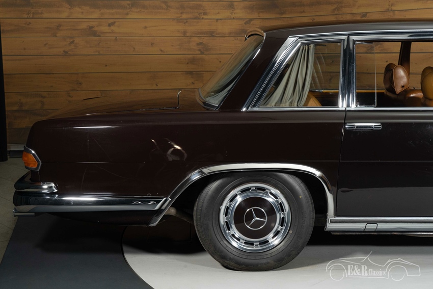 Donkerbruine Mercedes-Benz 600 te koop Ook uiterlijk en interieur ademen exclusiviteit. Het diepe, donkerbruine lakwerk combineert prachtig met de klassieke lijnen en originele Mercedes wieldoppen. Binnenin wordt u verwelkomd door een luxueus lederen interieur in cognac/tan, rijk afgewerkt met wortelnotenhout fineer. Het centrale hogedruk-hydraulische systeem bedient ramen, stoelen en portieren, inclusief hydraulische soft-close portieren, terwijl de originele airconditioning zorgt voor extra comfort. Verder is de auto uitgerust met een Sennheiser (Senn Sound) audio-bedieningsunit en een originele Becker Grand Prix radio. Privacygordijnen in het achtercompartiment maken het geheel compleet en benadrukken het statige, representatieve karakter van deze Mercedes-Benz.