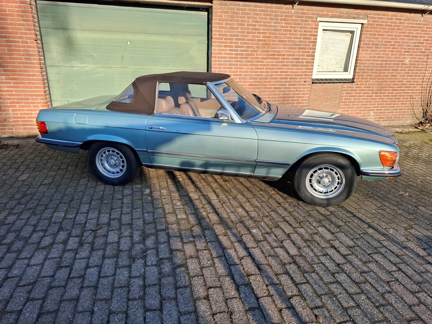 1971 Mercedes 350SL, Europese uitvoering, zeldzame kleur. Nieuwe bruine softtop. Verkoop in consignatie. Meer info en foto's op www.DeLeonClassicCars.com