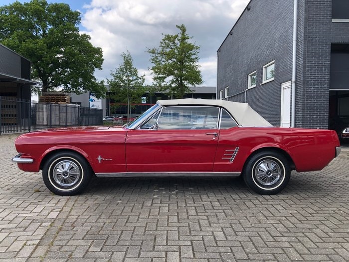 Hartelijk dank voor uw interesse in deze prachtige Ford Mustang Cabriolet. Betreft een originele zeer gewilde 1966 Mustang Cabrio! ook op kenteken! Technisch: Technisch verkeerd deze mustang nog in erg goede conditie. De motor start direct en draait perfect. Motor is rook en trilling vrij. Auto is afkomstig uit een privé collectie waar hij altijd warm en droog gestald heeft gestaan. Remmen zijn eind 2023 nog na gekeken bij een garage. Door het stilstaan de laatste 2 jaar is de koppeling iets gaan vastkleven waardoor hij niet direct reageert maar iets later. Exterieur: Het exterieur toont zich nog in een prima conditie zoals u op de foto's kunt zien. Auto is ooit opnieuw gespoten en door gebruik heeft hij natuurlijk de normale gebruiker/ouderdomssporen. Hier en daar een bijwerkplekje te vinden, dus geen nieuwstaat. Recent volledig hoogglans gepolijst door een car detailer. Interieur: Prachtige lederen bekleding in goede conditie. Ooit al eens gerestaureerd. Dashboard geheel origineel en toont zich goed. Recent ook volledig gereinigd van binnen klaar voor een nieuwe eigenaar. Originele meters allemaal aanwezig in het dashboard. Chassis: Is geheel origineel. Doordat hij bijna heel zijn leven warm en droog heeft gereden en gestald gestaan verkeerd het nog in goede originele staat. Natuurlijk niet nieuw gerestaureerd maar goed. De laatste keuring in Nederland GEEN één aantekening. Kortom een goede Mustang originele Cabrio als daily driver in de zomer of in collectie! Af te halen in Hardenberg.