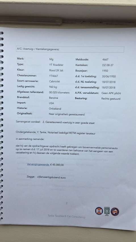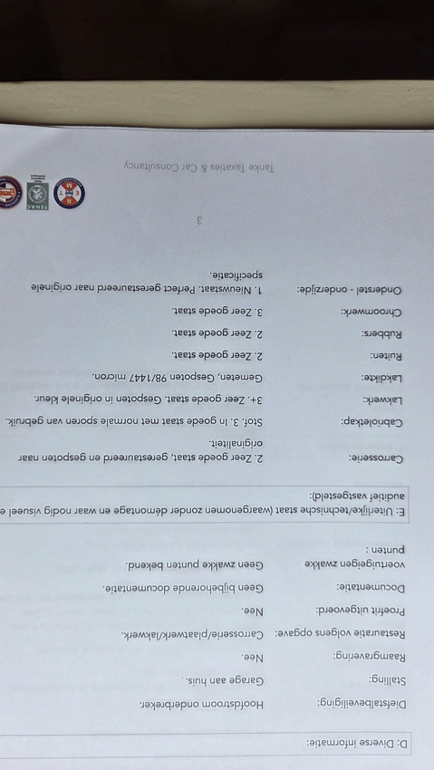 Het volledige taxatierapport is beschikbaar en wordt gedeeld via de foto's in de advertentie, zodat geïnteresseerden een goed beeld krijgen van de kwaliteit en waarde van deze auto.