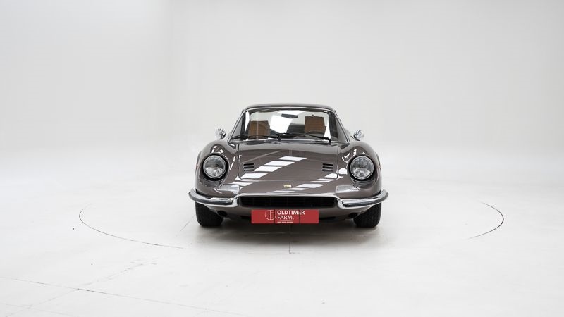 Merk: Ferrari Model: Dino 246 GT Bouwjaar: 1972 Motor: 2.418 cc V6 Transmissie: Manuele versnellingsbak Kleur: Marrone Dino Metallizzato Kilometerstand: 84.795 km (afgelezen) Chassisnummer: 05166 Stuurpositie: Links Datum eerste inschrijving: 20-11-1972