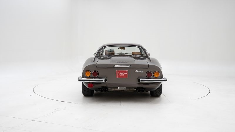 Merk: Ferrari Model: Dino 246 GT Bouwjaar: 1972 Motor: 2.418 cc V6 Transmissie: Manuele versnellingsbak Kleur: Marrone Dino Metallizzato Kilometerstand: 84.795 km (afgelezen) Chassisnummer: 05166 Stuurpositie: Links Datum eerste inschrijving: 20-11-1972