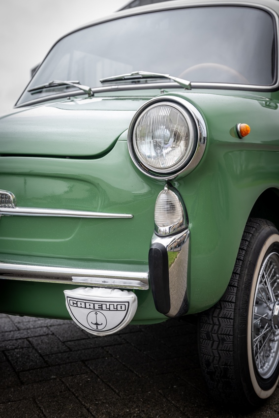 Een zeldzaam charmant icoon in prachtstaat. Deze Autobianchi Bianchina Panoramica is een origineel Italiaans exemplaar dat tot 2017 in Italië verbleef (met origineel Italiaans libretto aanwezig). Daarna verhuisde hij naar België, waar hij deel uitmaakte van de collectie van één van onze klanten—liefdevol bewaard, sporadisch gebruikt.