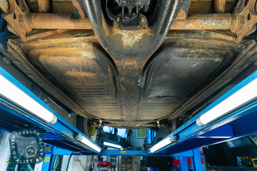 Qua metaalwerk en carrosserie bevindt de auto zich in een gezonde, harde staat. De accubak is in het verleden eens gerepareerd, maar verder zijn er geen doorgeroeste delen te vinden.