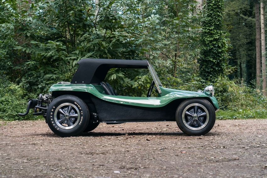Gewoon in nieuwstaat. Lak, bekleding, velgen, banden, alles is nieuw. Gespoten in de schitterende VW kleur velvet green, Enkei velgen met achterop de nostalgische Firedstone Wide Oval banden, Hurst shifter, Chromen koplampen, dubbele carburateurs en mooie periodiek correct stuurtje en kuipstoeltjes. Duits kenteken met ingekort chassis vermeld in de papieren.