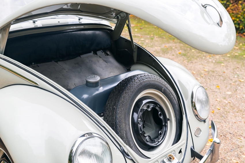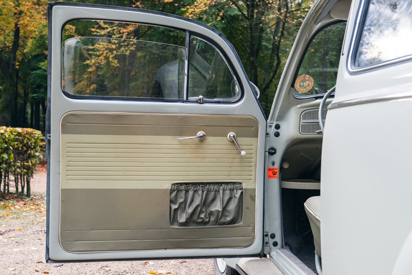 Deze kever is ooit optisch volledig aangepakt: de lak is vernieuwd in de originele kleur parelwit, alle rubbers zijn vervangen en het chroomwerk verkeert in goede staat. Van binnen is echter alles nog origineel, precies zoals deze Kever in 1960 de fabriek verliet – inclusief de originele lak, bekleding en details.