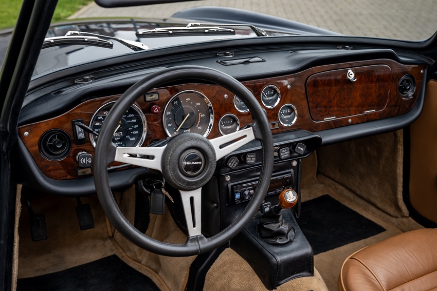 De zescilinder van de TR6 levert fijn koppel onderin en een volle, verslavende klank. Met overdrive schakelt hij ontspannen lange afstanden weg; het onderstel voelt stabiel en communicatief, precies wat je wilt op binnenwegen en toertochten. Dit is een ideale oldtimer voor wie vooral plezier wil beleven—toegankelijk, betrouwbaar en met een échte sportwagenbeleving uit de jaren '70.