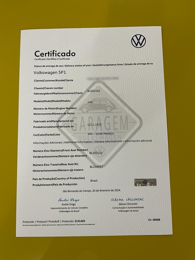 Ja, dit is hem. De VW SP1. De eerste serie, waarvan slechts 84 exemplaren ooit zijn geproduceerd, uitgerust met een 1600cc luchtgekoelde motor. VW geboorteakte. E-mail voor prijsinformatie.