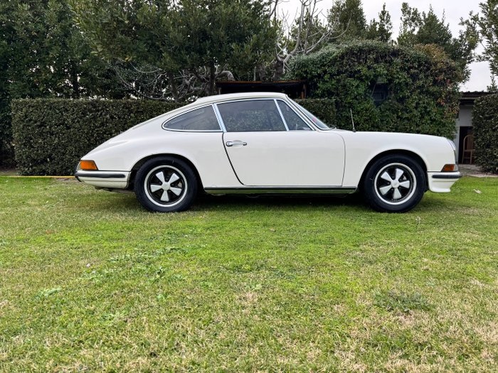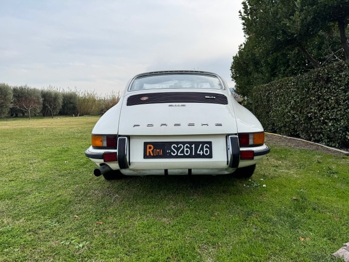 Overzicht/Voorwaarden Porsche 911 S 2.4 coupé uit 1973 in lichte ivoorkleur. De auto is aangetroffen in een schitterende staat van behoud. De motor is drie jaar geleden gereviseerd, na de vondst... er is een volledig onderhoudsbeurt uitgevoerd bij een garage in de omgeving die sportauto's behandelt met originele Porsche-onderdelen. Wat betreft de carrosserie is het plaatwerk dat het kenteken draagt vervangen, omdat het door de tijd beschadigd was. De wagen komt op gang en is heel leuk om te rijden, iconisch en uiterst stijlvol met de klassieke Porsche-witte kleur. In het interieur zijn gebruikssporen te zien op de bestuurdersstoel, maar daarnaast vertoont het ook normale tekenen van veroudering; als optie zat er een cassetteradio ingebouwd. De auto wordt verkocht samen met het Porsche-certificaat van oorsprong dat de serienummers van motor en chassis valideert en bevestigt dat de auto een Porsche 911 S 2.4 uit 1973 is, in een lichte ivoren kleur met een zwart kunstleder interieur. Om de auto perfect te maken, moet het interieur worden herzien: de bestuurdersstoel moet worden afgesteld en er zit een scheur in het voorste dashboard (wel zichtbaar op de foto's). Documentatie Een set Italiaanse documenten. Zichtbaar in San Benedetto del Tronto, Italië.