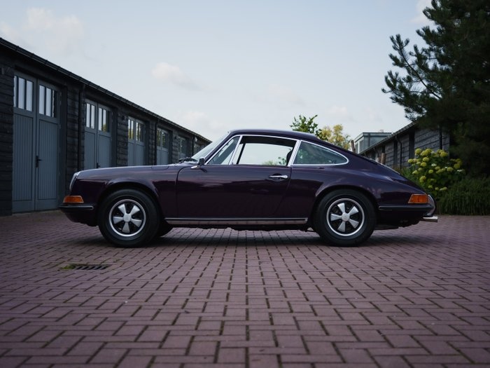 GENERAL: For Sale: this 1972 Porsche 911T 2.4L Ölklappe Coupe, presented in its factory-original Aubergine color. This example showcases the iconic Ölklappe, a one year only external oil filler cap. This Porsche retains much of its original design, making it a desirable option for both enthusiasts and collectors. BODY & PAINTWORK: The car features clean and solid bodywork with excellent panel fit and rust-free floors. Finished in the elegant and period-correct Aubergine (4040), the paint maintains a classic presence. Chrome trim and bumper overriders are present and in good condition, further underlining the car's authentic presentation. MECHANICAL CONDITION: Equipped with the 2.4-liter flat-six engine mated to a 5-speed manual transmission (915 type), this 911T delivers a true classic Porsche driving experience. To get the best experience from this 911, we recommend giving the engine a service to ensure reliable operation. The suspension should also be checked, as it is slightly higher than it should be. INTERIOR: The cabin is in very good condition, featuring black leather upholstery (recently reupholstered) that complements the exterior. The car retains its original Porsche steering wheel and S-style instruments, all which function as intended. The complete interior has been reupholstered. DOCUMENTATION & DETAILS: The odometer reads 87,586 miles. The car rides on classic Fuchs alloy wheels, completing its period-correct aesthetic. It comes with all necessary paperwork for registration and road use. ADDITIONAL INFORMATION: This 1972 Porsche 911T is an honest and well-preserved example that combines originality with mechanical soundness. Whether intended for regular driving or long-term collecting, it represents a rare opportunity to acquire an early 911 in desirable specification and condition. Extra services: Transport: We can arrange transport for you, both open and closed. Export: We offer full export support, should you wish to export the car.