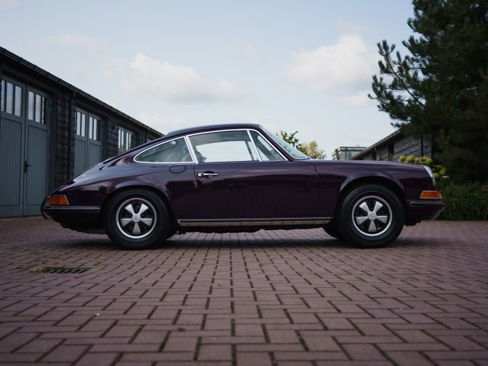 GENERAL: For Sale: this 1972 Porsche 911T 2.4L Ölklappe Coupe, presented in its factory-original Aubergine color. This example showcases the iconic Ölklappe, a one year only external oil filler cap. This Porsche retains much of its original design, making it a desirable option for both enthusiasts and collectors. BODY & PAINTWORK: The car features clean and solid bodywork with excellent panel fit and rust-free floors. Finished in the elegant and period-correct Aubergine (4040), the paint maintains a classic presence. Chrome trim and bumper overriders are present and in good condition, further underlining the car's authentic presentation. MECHANICAL CONDITION: Equipped with the 2.4-liter flat-six engine mated to a 5-speed manual transmission (915 type), this 911T delivers a true classic Porsche driving experience. To get the best experience from this 911, we recommend giving the engine a service to ensure reliable operation. The suspension should also be checked, as it is slightly higher than it should be. INTERIOR: The cabin is in very good condition, featuring black leather upholstery (recently reupholstered) that complements the exterior. The car retains its original Porsche steering wheel and S-style instruments, all which function as intended. The complete interior has been reupholstered. DOCUMENTATION & DETAILS: The odometer reads 87,586 miles. The car rides on classic Fuchs alloy wheels, completing its period-correct aesthetic. It comes with all necessary paperwork for registration and road use. ADDITIONAL INFORMATION: This 1972 Porsche 911T is an honest and well-preserved example that combines originality with mechanical soundness. Whether intended for regular driving or long-term collecting, it represents a rare opportunity to acquire an early 911 in desirable specification and condition. Extra services: Transport: We can arrange transport for you, both open and closed. Export: We offer full export support, should you wish to export the car.