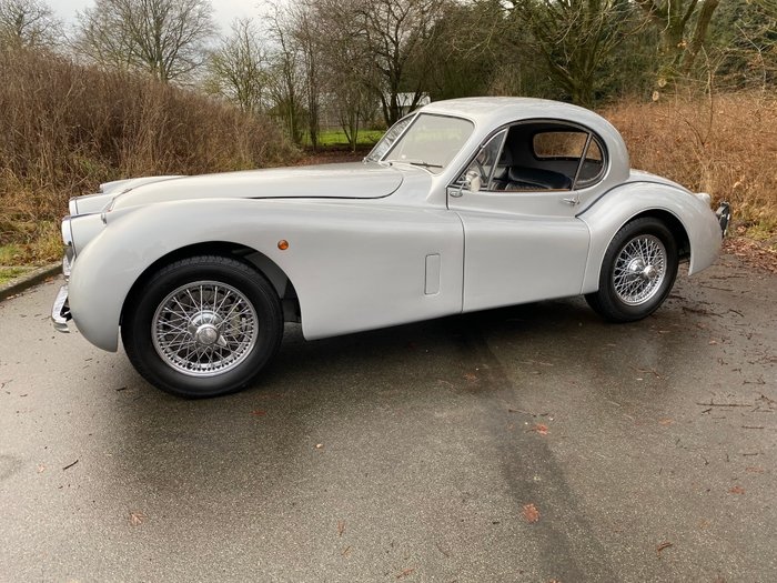 1951 Jaguar XK120 Fixed-Head Coupe - Gedocumenteerde moer- en boutrestauratie Jaguar XK120 Fixed-Head Coupe in zilver met een zwart lederen interieur. De auto behoudt zijn oorspronkelijke 3,4-liter zescilinder met dubbele bovenliggende nokkenassen, die vanuit de fabriek 160 pk levert. Het voertuig werd onder het vorige eigenaarschap geüpgraded voor verbeterde rijdynamiek, waaronder een nieuwer 5-versnellingsbak, voorremmen met schijven aan de voorkant, elektrische motorkoeling en een generatorinstallatie. De goed gedocumenteerde restauratie, vastgelegd in 150 foto's, is bij de verkoop inbegrepen. De originele matching-numbers transmissie, die momenteel niet in de auto is geïnstalleerd, en een reservewiel zijn bij de verkoop inbegrepen, evenals facturen ter waarde van €78.500,- over de afgelopen 20 jaar dat de auto in eigendom van de verkoper is geweest. De lak verkeert in uitstekende staat, zonder roest of beschadigingen. De naden tussen de panelen zijn door de hele auto gelijkmatig. Het chroom en de sierlijsten verkeren in uitstekende staat, zoals te zien is op de foto's. De spakenwielen verkeren ook in uitstekende staat. Alle lichten en instrumenten werken naar behoren. Het interieur verkeert in uitstekende staat, met minimale sporen van gebruik. Het tapijt, het dashboard, de deurinserts, instrumenten en meters verkeeren in uitstekende staat. De onderzijde verkeert in uitzonderlijke staat voor een auto van deze leeftijd. De motor draait soepel en krachtig, zonder problemen. Er is geen rook bij het starten of oververhitting. De remmen verkeren in goede staat, en de auto stopt met gezag, zonder geluid of trillingen. De vijftraps handgeschakelde versnellingsbak schakelt soepel en zonder problemen. De auto is niet langer in Deense langdurige eigendom geweest en heeft Deense papieren en een kenteken. Het voertuig heeft de Deense technische keuring (MOT/TUV/Syn) doorstaan en heeft tot 2027 geen herkeuring nodig. Het voertuig heeft zojuist een volledige inspectie en onderhoud ondergaan ter voorbereiding op deze veiling en verkeert in uitstekende mechanische en esthetische staat. Auto Specificaties: VIN/Chassisnummer: 679120 Kilometerstand: 04019 mijlen Transmissie: 5-versnellingen handgeschakeld Motor: 6-cil. 3442cc/160 pk 2x1bbl Motornummer: W34358 Exterieurkleur: Birch Grey Eerste dealer: Hornburg Datum van fabricage: 11 oktober 1951 Verzenddatum: 14 november 1951 Transport & Registratie Wij zijn een dealer in klassieke auto's in Denemarken. We verkopen en verzenden onze auto's wereldwijd. Wij helpen graag met verzending en registratie in uw land. We hebben een uitgebreid netwerk van internationale vervoerders en douane-agenten waar we al 20 jaar mee samenwerken en die we kennen en vertrouwen. Het verzenden naar de meeste Europese landen kost ongeveer 500 tot 1000 euro. Het Verenigd Koninkrijk kost ongeveer 800 euro.