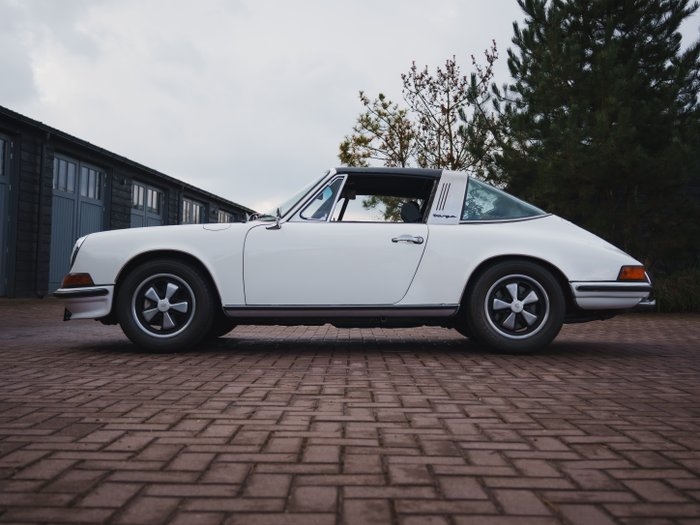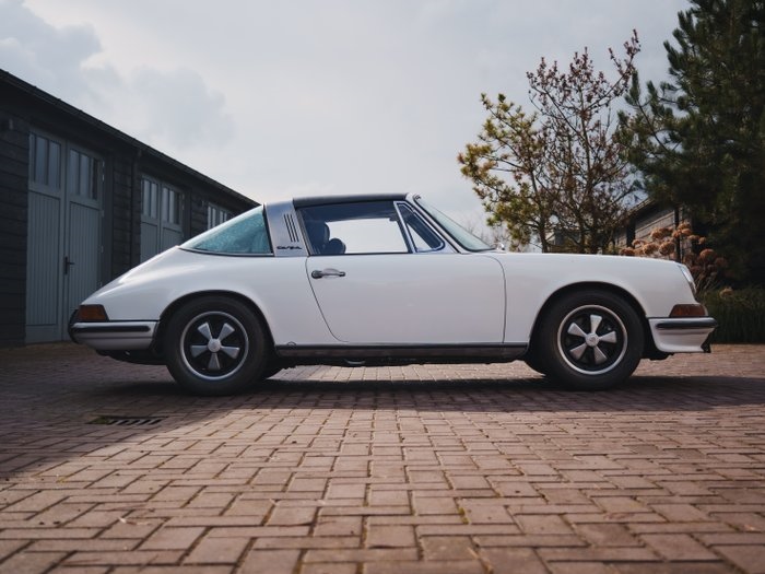 GENERAL 911 S matching numbers Sephia brown, running and driving For Sale: This 1970 Porsche 911S 2.2L Coupe, presented in Elfenbein White. This example is one of only 729 Targas built in 1970. This Porsche retains much of its original design, making it a desirable option for both enthusiasts and collectors. original color Sephia Brown BODY & PAINTWORK The car features clean and solid bodywork with excellent panel fit and rust-free floors. Finished in the elegant and period-correct Elfenbein White, but original color sephia brown, the paintwork is in good condition, although light signs of use are visible on certain areas. The silver Targa bar with gold model designation gives this Porsche the correct, authentic presentation. MECHANICAL CONDITION Equipped with the 2.2-liter flat-six engine mated to a 5-speed manual transmission, this 911S delivers the true classic Porsche sports driving experience of its era. The engine runs well but could benefit from a service to ensure reliable operation. Overall, it is in good mechanical order. INTERIOR The cabin is in original condition, featuring black leather upholstery. The car retains its original Porsche steering wheel. The front seats are original Recaro sport seats finished in black leather, providing excellent support and keeping you securely in place while driving. DOCUMENTATION & DETAILS The odometer reads 43,867 kilometers. The car rides on classic Fuchs alloy wheels, completing its period-correct aesthetic. It comes with all necessary paperwork for registration and road use. ADDITIONAL INFORMATION A beautiful example of a classic “Longhood” 911 (extended hood), offering a stunning visual presence. The car has been very well maintained and runs and drives well. EXTRA SERVICES Transport: We can arrange transport for you, both open and enclosed. Export: We offer full export support should you wish to export the car.