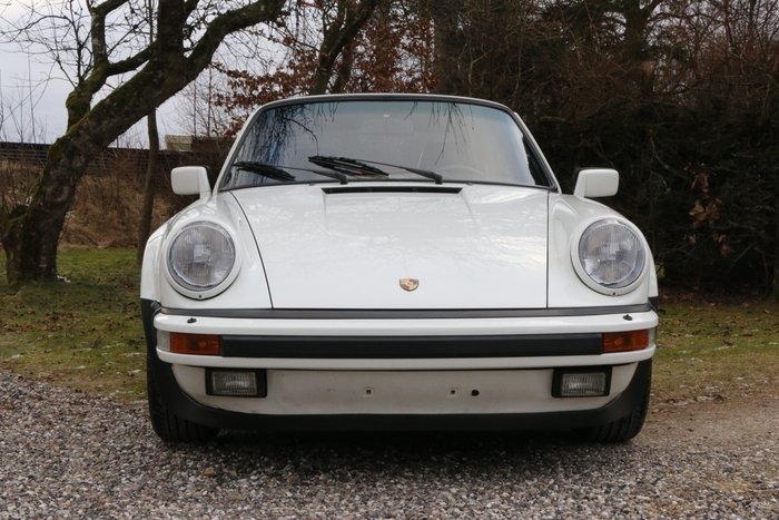 Bekijk deze iconische Porsche 911, bekend als de widow maker vanwege de turbo-boost. Deze auto is oorspronkelijk nieuw geleverd aan de VS en in 2009 naar Europa geïmporteerd; daar is hij eigendom geweest van een Duitser tot 2018, waarna hij deel uitmaakte van een privé Deense collectie. De lak is over het algemeen in goede staat, maar let op het rechter achterspatbord (zie foto's), waarop een scheur in de lak zit. Als je de lak opmeet lijkt het erop dat zowel het voor- als achterspatbord aan de rechterkant ooit tegelijk opnieuw zijn gespoten. Verder ziet de lak er goed uit, met enkele deuken en slechts een paar heel kleine steenslagplekjes aan de voorkant. - Voorruit heeft ook geen schade die groter is dan een steenslag, maar er zitten wel een paar kleine beschadigingen. Binnenin is alles zonder krassen (ook geen barsten in het dashboard). De zwarte lederen stoelen zien er nog goed uit en voelen zacht aan met normale gebruikssporen na gebruik, maar geen slijtage aan de zijkant van de stoelen waar je in- en uitstapt. De softtop heeft alleen normale marks wanneer hij gevouwen wordt. Het cabriodak werkt elektrisch en gaat zonder problemen omhoog en omlaag; druk gewoon op de knop op het dashboard. Het airconditioningssysteem gebruikt het oude type koelmiddel, wat in Denemarken niet langer is toegestaan om bij te vullen, dus kunnen we niet garanderen dat het werkt. Het elektrische raam in de bestuurdersdeur werkt alleen voor het linkerraam; het rechterraam kan bediend worden vanaf de schakelaar in de rechterdeur. Als je van plan bent de auto regelmatig te gebruiken, raden we je aan eerst een onderhoudsbeurt te laten uitvoeren voordat je ermee aan de slag gaat, omdat er destijds toen hij in de collectie zat niet zo vaak onderhoud is uitgevoerd. De banden zijn Continental en hebben ongeveer 50% loopvlakslijtage, maar dateren uit 2015. Helaas is er geen serviceboekje bij de auto, maar de documentatie die bij de auto hoort, zoals de factuur en het Autocheck-rapport, geloven wij dat de kilometerstand klopt. In 2016 is er een Duits Fahrzeugwertgutachten opgesteld, dat de kilometerstand op dat moment op 40.882 km documenteert, en met de beoordeling 2+ wat betreft de algehele toestand.