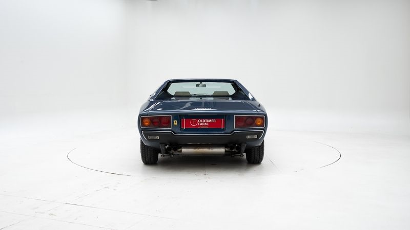 Dit exemplaar werd voor het eerst ingeschreven op 01/01/1980 en verkeert in een oudere originele staat. De carrosserie werd in het verleden herlakt en vertoont sporen van gebruik die passen bij de leeftijd en het authentieke karakter van de wagen. De Blu Dino Metallizzato-kleur benadrukt het elegante lijnenspel van de GT4 en sluit perfect aan bij de periodecorrecte uitstraling.