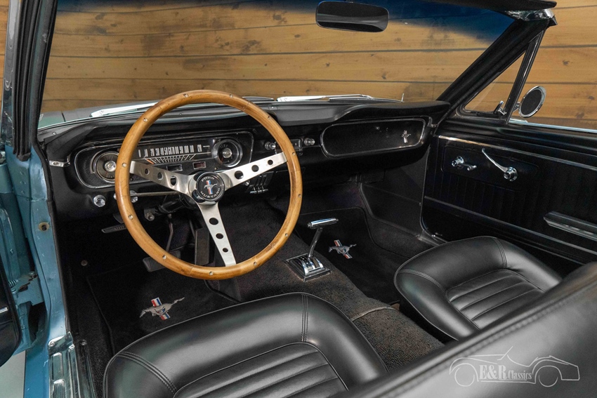 Lichtblauw metallic Mustang Cabriolet uit 1965 te koop Zoals u op de foto’s kunt zien verkeert deze Ford Mustang Cabriolet in een zeer goede staat. Hij is uitgevoerd in een lichtblauw metallic lakwerk dat prachtig staat op de klassieker en erg mooi combineert met het chroomwerk. Het interieur is uitgerust met zwarte kunstlederen bekleding. De Mustang heeft een zwarte soft top die u gemakkelijk inklapt zodra de zon schijnt zodat u heerlijk kunt genieten van de buitenlucht tijdens het toeren.