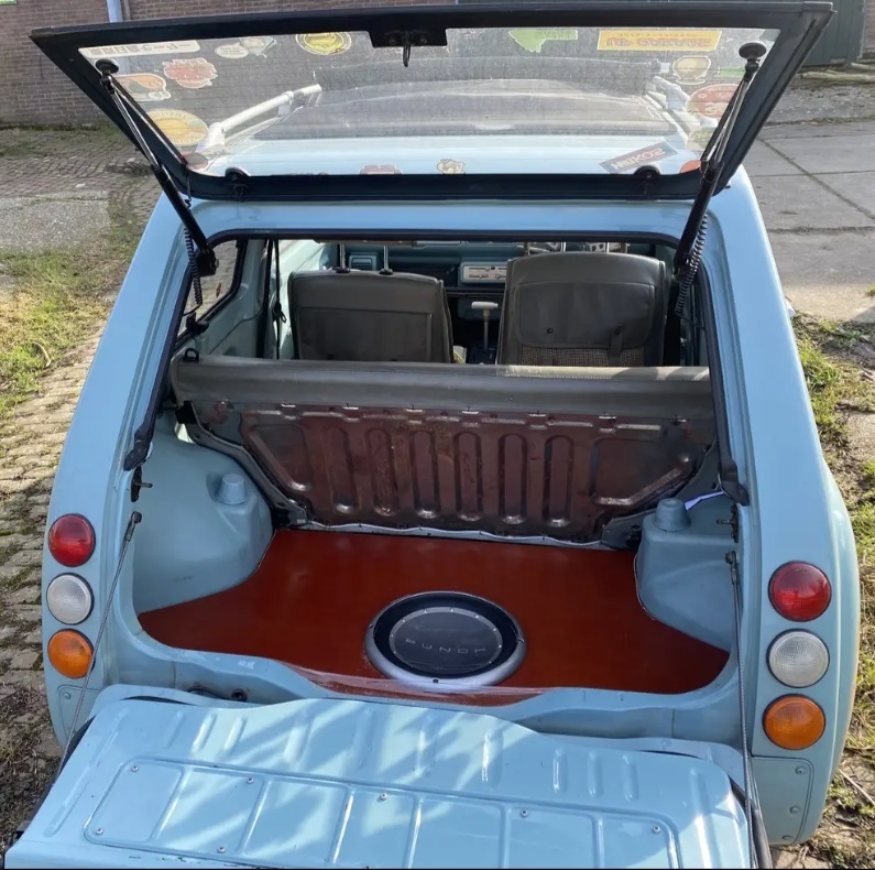 In totaal zijn er net iets meer dan 31000 Pao's geproduceerd in de 'Pike' factory van Nissan, daarvan waren er slechts 7546 in deze kleur…. Maar slechts 1 ziet eruit als deze Pao 'Woody' .