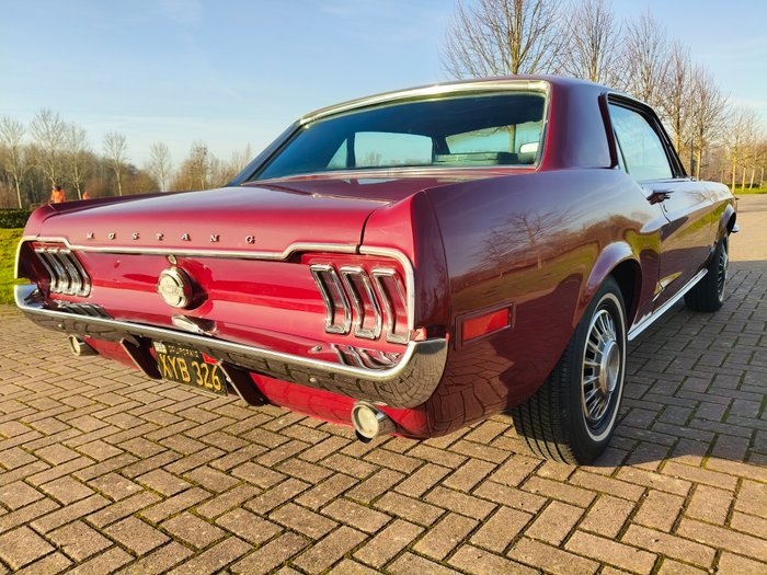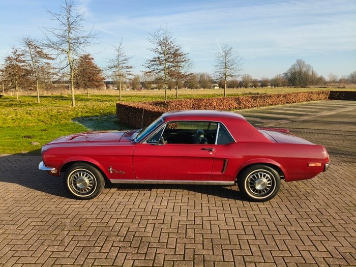 1968 Ford Mustang V8 - 289 C-Code Deze Mustang is een originele V8 (C code) De motor is een V8 met een Automatische versnellingsbak. 1968 Ford Mustang V8 – California Built ALGEMEEN: Te koop aangeboden: een echte Black Plate 1968 Ford Mustang V8, California-built, in een mooie donkerrode kleur, in originele staat en met een één eigenaar historie – in familiebezit sinds nieuw. Deze klassieker is een Black Plate auto, bekend in Nederland, rijdt authentiek en biedt de ultieme Amerikaanse rijervaring. Dankzij de stuurbekrachtiging combineert deze Mustang comfort met tijdloze styling. Ideaal voor verzamelaars en liefhebbers die een karaktervolle, originele Mustang zoeken. Vele documenten bijgeleverd van de familie die deze echte Californische auto nieuw gekocht heeft! CARROSSERIE & LAKWERK: De Mustang heeft een nette carrosserie, is strak en recht, met mooie originele lijnen. Het lakwerk toont een mooie patina en is op een paar plaatsen doorgepoetst, passend bij de leeftijd van de auto en benadrukt het klassieke karakter. De vloeren zijn rustfree en roestvrij, en de cowl vent is lekvrij, passend bij de uitzonderlijke staat van deze Mustang. Originele wieldoppen maken het klassieke uiterlijk compleet. Hier en daar zijn lichte imperfecties in het lakwerk aanwezig, zoals te verwachten bij een originele auto van deze leeftijd. TECHNISCH: Onder de motorkap ligt een betrouwbare V8-motor, gekoppeld aan een soepel schakelende transmissie. De Mustang rijdt zoals een klassieke V8 hoort: krachtig, soepel en met het kenmerkende diepe V8-geluid. Stuurbekrachtiging en goed onderhouden techniek zorgen voor een comfortabele rijervaring. INTERIEUR: Het interieur is netjes en goed onderhouden. Stoelen, deurpanelen en details zijn volledig passend bij het karakter van de auto. Het dashboard is nog netjes met ouderdomssporen. Het tapijt is ok nog in nette conditie. DOCUMENTEN: USA title en invoerdocumenten AFHALING: De Mustang kan na afloop van de veiling worden afgehaald in Appingedam. Transport kan in overleg worden geregeld. OVERIGE INFORMATIE: Echte Black plate auto Deze 1968 California-built Ford Mustang V8 in mooie donkerrode kleur is een karaktervolle en originele klassieker met roestvrije vloeren Een unieke kans voor verzamelaars en liefhebbers die op zoek zijn naar een waardevaste Amerikaanse klassieker in originele staat, met authentieke patina!