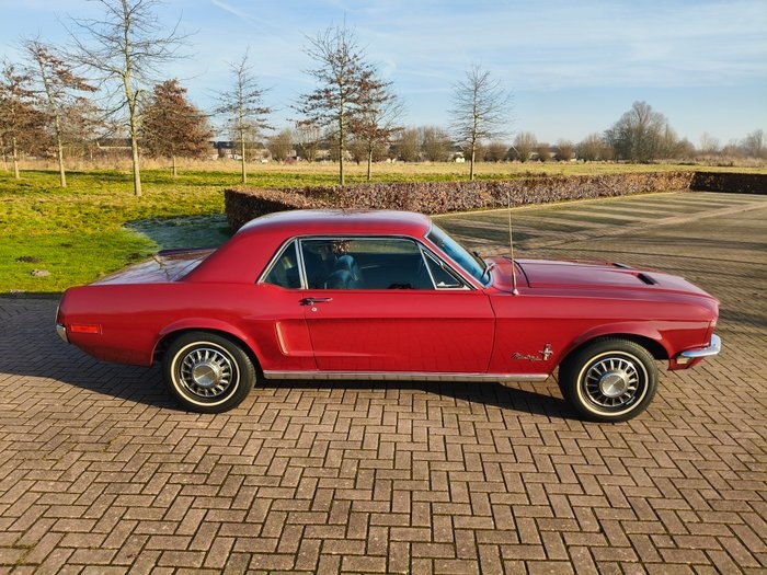 1968 Ford Mustang V8 - 289 C-Code Deze Mustang is een originele V8 (C code) De motor is een V8 met een Automatische versnellingsbak. 1968 Ford Mustang V8 – California Built ALGEMEEN: Te koop aangeboden: een echte Black Plate 1968 Ford Mustang V8, California-built, in een mooie donkerrode kleur, in originele staat en met een één eigenaar historie – in familiebezit sinds nieuw. Deze klassieker is een Black Plate auto, bekend in Nederland, rijdt authentiek en biedt de ultieme Amerikaanse rijervaring. Dankzij de stuurbekrachtiging combineert deze Mustang comfort met tijdloze styling. Ideaal voor verzamelaars en liefhebbers die een karaktervolle, originele Mustang zoeken. Vele documenten bijgeleverd van de familie die deze echte Californische auto nieuw gekocht heeft! CARROSSERIE & LAKWERK: De Mustang heeft een nette carrosserie, is strak en recht, met mooie originele lijnen. Het lakwerk toont een mooie patina en is op een paar plaatsen doorgepoetst, passend bij de leeftijd van de auto en benadrukt het klassieke karakter. De vloeren zijn rustfree en roestvrij, en de cowl vent is lekvrij, passend bij de uitzonderlijke staat van deze Mustang. Originele wieldoppen maken het klassieke uiterlijk compleet. Hier en daar zijn lichte imperfecties in het lakwerk aanwezig, zoals te verwachten bij een originele auto van deze leeftijd. TECHNISCH: Onder de motorkap ligt een betrouwbare V8-motor, gekoppeld aan een soepel schakelende transmissie. De Mustang rijdt zoals een klassieke V8 hoort: krachtig, soepel en met het kenmerkende diepe V8-geluid. Stuurbekrachtiging en goed onderhouden techniek zorgen voor een comfortabele rijervaring. INTERIEUR: Het interieur is netjes en goed onderhouden. Stoelen, deurpanelen en details zijn volledig passend bij het karakter van de auto. Het dashboard is nog netjes met ouderdomssporen. Het tapijt is ok nog in nette conditie. DOCUMENTEN: USA title en invoerdocumenten AFHALING: De Mustang kan na afloop van de veiling worden afgehaald in Appingedam. Transport kan in overleg worden geregeld. OVERIGE INFORMATIE: Echte Black plate auto Deze 1968 California-built Ford Mustang V8 in mooie donkerrode kleur is een karaktervolle en originele klassieker met roestvrije vloeren Een unieke kans voor verzamelaars en liefhebbers die op zoek zijn naar een waardevaste Amerikaanse klassieker in originele staat, met authentieke patina!