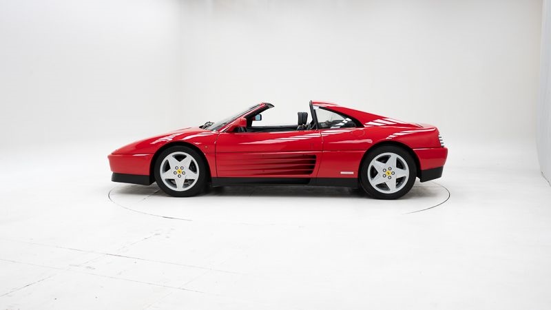 De Ferrari 348 TS markeert een belangrijke fase in de evolutie van Ferrari’s middenmotor-V8 modellen en vormt de brug tussen de klassieke analoge Ferrari’s en de modernere generatie die later zou volgen. Met zijn scherpe lijnen, brede stance en typische Testarossa-geïnspireerde zijroosters ademt de 348 pure jaren ’90 Ferrari-DNA.