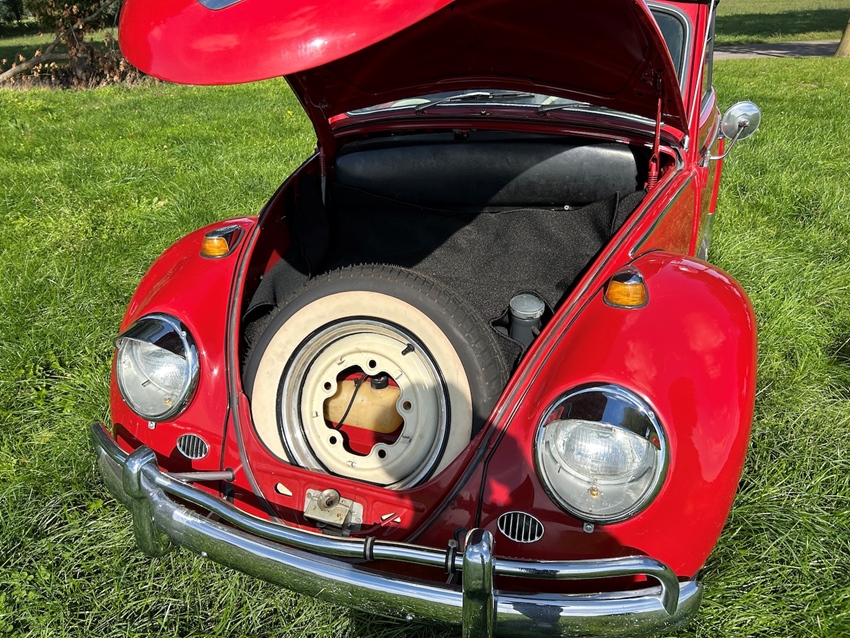 Prachtig gerestaureerde Kever Cabriolet uit 1965 in de kleur Robin Red, de auto is body off gerestaureerd, heeft nieuwe remmen voor en achter, motor 1600cc 50pk, stoelen opnieuw bekleed, alles is prachtig gerestaureerd tijdens de Kever restauratie Koetswerk in kleur gespoten inclusief de binnenkant van wielkasten zodat je snel kunt zien hoe goed deze Kever Cabriolet is gerestaureerd met originele white wall banden, zelfs het reservewiel. met taxatie rapport van 39000 euro