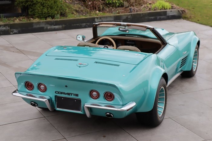 Chevrolet Corvette C3 Stingray Cabriolet LT-1 1972 - Custom Wide Body - Zeldzame 5.7-liter LT-1 V8-motor met ca. 360 pk - Handgeschakelde versnellingsbak - Uniek 'Custom-made' met zeldzame polyester widebodykit van Daytona Greenwood - Technisch uitvoerig gereviseerd met ca. € 45.000,- investeringskosten - Originele 1972 Owners Manual aanwezig - Hardtop en softtop HISTORIE/DOCUMENTATIE Deze Chevrolet Corvette C3 is geregistreerd in de Verenigde Staten op 15 september 1972. In 2021 is de auto verkocht van Nederland naar België. Hier is de auto bij een specialist zeer uitgebreid technisch en machanisch onder handen genomen, waarvan vele facturen aanwezig zijn met een totale waarde van ca. € 45.000,-. Onder meer de motor is hierbij gereviseerd. Zie onze uitgebreide fotoreportage voor onderhoudsspecificaties. Na de revisie heeft de auto slechts ca. 1.000 km gereden. De originele Corvette 'Owner's Manual' uit 1972 is bij de auto aanwezig! De auto is custom made met een verbrede carrosserie door middel van een polyester widebodykit, wat de auto in combinatie met de kleur een unieke en zeer stoere uitstraling geeft. Optisch kan de auto verder verbetert worden. De originele kleur van deze auto is 'War Bonnet Yellow' (kleurcode 989). Afhankelijk van smaak kan de auto dus ook in deze originele, prachtige en gewilde kleur geel teruggebracht worden. Het bouwjaar 1972 (met chromen bumpers) is zeer verzamelwaardig. EXTERIEUR Een unieke en opvallende verschijning: dat komt vooral door de brede bodykit die is aangebracht op deze Corvette, in combinatie met de turquoise kleur. Deze aanpassingen zijn nog uitgevoerd in de Verenigde Staten. Er is een hardtop aanwezig in dezelfde kleur. Verder beschikt de auto over een witte softtop. De bodykit geeft de auto van voor tot achter een compleet andere look, waarin de prachtige lijnen van het model geaccentueerd worden. De bodykit is gaan werken en is recent bijgewerkt, maar voor een perfect exterieur dient de auto worden overgespoten. Rubbers en chroomwerk beschikken over normale gebruikerssporen. Het jaar 1972 was het productiejaar waarin de fraaie chromen bumpers werden toegepast, waarover de auto nog beschikt. Verder beschikt de auto over een hardtop in dezelfde kleur. De turbinevelgen van 'American Racing' zijn spectaculair en voorzien van 'General Grabber HP' banden, voorzien van witte opgelegde letters. De remklauwen zijn rood gespoten. INTERIEUR Het interieur is grotendeels origineel en beschikt over normale gebruikerssporen. De trimcode van het interieur is 417, wat staat voor 'Saddle Vinyl'. Vanzelfsprekend is de bekleding afgewerkt met vinyl-leder. Het bruine interieur beschikt over grote tellers voor de bestuurder die diep zijn verzonken in het dashboard. De middenconsole beschikt over 5 aanvullende tellers. Verder is het interieur relatief luxe uitgerust, met onder meer verwarming en een radiospeler. Verder beschikt het interieur over de vernuftige 'Astro Ventilation'. Dit betekent ventilatieopeningen aan de voorkant van de cabine en ventilatieopeningen aan de achterkant, net achter de achterruit. De lucht stroomt hierdoor vanuit de motorkap, door de cabine en verlaat de cabine weer via de ventilatieopeningen aan de achterkant. TECHNISCH Onder deze unieke carrosserie bevindt zich een grondig aangepakte auto: van het chassis tot de remmerij is royaal geïnvesteerd. Bekijk voor uitgebreide specificaties hiervan onze fotoreportage. Verder zijn onder meer wiellagers, remklauwen, schokbrekers (Bilstein), de benzinetank en de koppeling vernieuwd. De remmen zijn uitgerust met geventileerde remschijven. De motor is volledig gereviseerd, waarbij het blok uit de auto is gehaald.Onder Corvette liefhebbers is dit de heilige graal onder de motoren: de LT-1 'Small-block' 5.7-liter '350 Turbo-Fire' V8-motor. Deze motor is origineel geleverd voor de Corvette C3 en is een technisch hoogstandje: een high-compression small-block met solide lifters, gesmede krukas, 4-bolt main block, agressieve nokkenas en vrij ademend uitlaatsysteem. Met ca. 360 pk zorgt deze motor goed voor indrukwekkende prestaties en een karaktervolle, rauwe V8-beleving. De radiator is uitgevoerd in aluminium. Het uitlaatsysteem met spaghettispruitstuk is op maat gemaakt door Inox en zorgt voor een onvergetelijk geluid. Deze motor is gekoppeld aan een handgeschakelde 4-versnellingsbak. Een prettige optie waarover de Corvette beschikt is stuurbekrachtiging. Zowel de onderzijde als de motorruimte zien er zeer goed uit. Deze Corvette is dus rijklaar voor de volgende eigenaar. ALGEMEEN De Corvette Stingray uit de vroege jaren '70 vertegenwoordigt het absolute hoogtepunt van klassieke Amerikaanse sportwagens. Met zijn gespierde lijnen, geïntegreerde spatbord-verbreders en iconische chromen bumpers (tot en met 1972) combineert deze generatie tijdloos design met compromisloze prestaties. Onder de motorkap bood Chevrolet een indrukwekkend motorenpalet met als hoogtepunt de legendarische LT1. Met een vermogen van ca. 360 pk en race-geïnspireerde techniek stond de Stingray zijn man tegenover Europese sportwagens van naam — maar dan met een onmiskenbaar Amerikaans karakter. Niet voor niets wist Motor Trend in 1970 een kwartmijl-tijd van 14,36 seconden te noteren — prestaties die destijds wedijverden met Europese topklasse sportwagens. Het interieur werd verfijnd met beter gevormde stoelen en luxe opties zoals houtinleg en hoogwaardig tapijt en leren bekleding. Deze modeljaren markeren bovendien het einde van een tijdperk: de laatste Corvette's met volledige chromen bumpers, hoge compressiemotoren en ongefilterde V8-beleving vóór strengere emissieregels hun intrede deden. Zeldzame uitvoeringen en opties maken deze Stingray vandaag de dag bijzonder gewild onder verzamelaars.