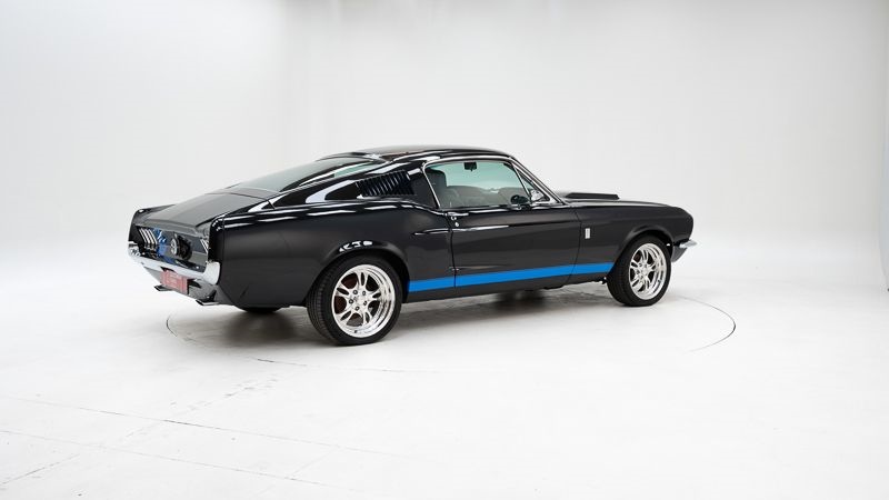 Merk: Ford Model: Mustang Fastback V8 Bouwjaar: 1968 Motor: 4.948 cc V8 Transmissie: Manuele 5-versnellingsbak Kleur: Black – Blue Kilometerstand: 52.258 (afgelezen) Chassisnummer: 8R02J125273 Stuurpositie: Links gestuurd Documenten: Belgische inschrijvingsbewijzen