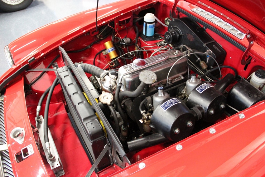 Wat een leuke MG B Roadster uit 1966, origineel Europese left-hand-drive uitvoering en met het mooie stalen dashboard. De afgelopen jaren is er veel geïnvesteerd in de techniek en carrosserie van deze Roadster en verkeerd daardoor in een zeer goede staat. Prachtige rode lak, snoeiharde bodem, mooi chroom en technisch in orde. De rode piping van het zwarte interieur maakt het geheel compleet. Voorzien van de fabrieks overdrive en oliekoeler, verder uitgevoerd met een sterkere startmotor, elektronische 123-ontsteking, Moto-Lita stuurwiel en 14 Inch Minilite Lichtmetalen velgen (5 stuks). Het model Mk1, met het stalen dashboard en het kenmerkende centrale chromen speakerrooster, werd gebouwd tot half 1968. Dit is duidelijk één van de betere en mooiere exemplaren welke op de markt te vinden is. De kilometerteller geeft 19.900km aan, maar de werkelijke kilometerstand is onbekend.