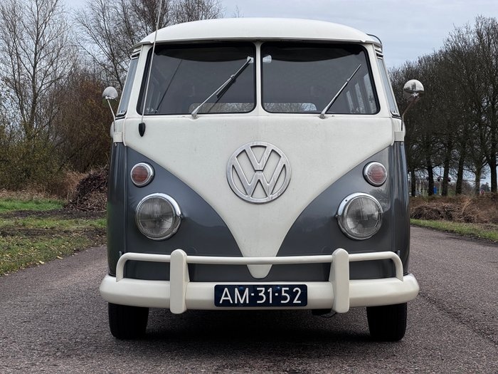 ALGEMEEN: Deze Volkswagen T1 'Split Window' uit 1964 betreft een originele USA-export met chassisnummer 1 255 158 en wordt geleverd met het officiële Volkswagen Identiteitscertificaat van het Stiftung AutoMuseum Volkswagen. De bus werd gebouwd op 24 februari 1964, verliet de fabriek op 29 februari 1964 en werd nieuw geleverd in de Verenigde Staten. De bijgevoegde California Title bevestigt de oorspronkelijke Amerikaanse registratie en eigenaarshistorie. Het betreft een correct gedocumenteerd exemplaar met een duidelijke herkomst en authentieke fabrieksgegevens. CARROSSERIE & LAKWERK: De bus is volledig gerestaureerd en uitgevoerd in het originele two-tone kleurenschema. Volgens het identiteitscertificaat werd de wagen af fabriek geleverd in L87 Perlweiß met Basaltgrau afwerking. De carrosserie toont strak plaatwerk, nette passing van de panelen en een verzorgde algehele uitstraling. Bumpers, ruiten, sierdelen en verlichting verkeren in goede staat en sluiten aan bij de originele uitstraling van dit model. TECHNISCH: De Volkswagen is uitgerust met een luchtgekoelde viercilinder boxermotor conform de originele T1-specificatie. Het motornummer is niet geregistreerd op het certificaat, wat correct is voor dit bouwjaar. Het motorcompartiment is netjes verzorgd en voorzien van vernieuwde onderdelen zoals ontsteking en brandstoffilter. De motor loopt goed en de handgeschakelde transmissie laat zich correct bedienen. De techniek is eenvoudig en goed toegankelijk, wat het onderhoud overzichtelijk maakt. INTERIEUR: Het interieur is vernieuwd in een periode-correcte stijl. Het dashboard en de bediening zijn origineel van opzet, met het karakteristieke stuurwiel en het metalen dashboard. De zitbanken en interieurpanelen zijn opnieuw bekleed en maken een frisse en verzorgde indruk, passend bij de rest van het voertuig. DOCUMENTEN: De bus wordt geleverd met het originele Volkswagen Identiteitscertificaat waarin alle fabrieksgegevens, M-codes en leveringsinformatie zijn opgenomen. Daarnaast is de originele California Certificate of Title aanwezig, wat de Amerikaanse registratie en herkomst bevestigt. AFHALING: De Volkswagen is beschikbaar voor bezichtiging op afspraak. Verdere details over locatie en afhaling kunnen in overleg worden besproken. OVERIGE INFORMATIE: Dit betreft een correct gerestaureerde en goed gedocumenteerde Volkswagen T1 'Split Window' met USA-exporthistorie. Dankzij de originele specificaties, authentieke kleurstelling en aanwezige documentatie is dit een aantrekkelijk exemplaar voor de liefhebber of verzamelaar van klassieke Volkswagens.