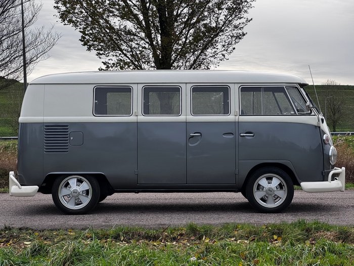ALGEMEEN: Deze Volkswagen T1 'Split Window' uit 1964 betreft een originele USA-export met chassisnummer 1 255 158 en wordt geleverd met het officiële Volkswagen Identiteitscertificaat van het Stiftung AutoMuseum Volkswagen. De bus werd gebouwd op 24 februari 1964, verliet de fabriek op 29 februari 1964 en werd nieuw geleverd in de Verenigde Staten. De bijgevoegde California Title bevestigt de oorspronkelijke Amerikaanse registratie en eigenaarshistorie. Het betreft een correct gedocumenteerd exemplaar met een duidelijke herkomst en authentieke fabrieksgegevens. CARROSSERIE & LAKWERK: De bus is volledig gerestaureerd en uitgevoerd in het originele two-tone kleurenschema. Volgens het identiteitscertificaat werd de wagen af fabriek geleverd in L87 Perlweiß met Basaltgrau afwerking. De carrosserie toont strak plaatwerk, nette passing van de panelen en een verzorgde algehele uitstraling. Bumpers, ruiten, sierdelen en verlichting verkeren in goede staat en sluiten aan bij de originele uitstraling van dit model. TECHNISCH: De Volkswagen is uitgerust met een luchtgekoelde viercilinder boxermotor conform de originele T1-specificatie. Het motornummer is niet geregistreerd op het certificaat, wat correct is voor dit bouwjaar. Het motorcompartiment is netjes verzorgd en voorzien van vernieuwde onderdelen zoals ontsteking en brandstoffilter. De motor loopt goed en de handgeschakelde transmissie laat zich correct bedienen. De techniek is eenvoudig en goed toegankelijk, wat het onderhoud overzichtelijk maakt. INTERIEUR: Het interieur is vernieuwd in een periode-correcte stijl. Het dashboard en de bediening zijn origineel van opzet, met het karakteristieke stuurwiel en het metalen dashboard. De zitbanken en interieurpanelen zijn opnieuw bekleed en maken een frisse en verzorgde indruk, passend bij de rest van het voertuig. DOCUMENTEN: De bus wordt geleverd met het originele Volkswagen Identiteitscertificaat waarin alle fabrieksgegevens, M-codes en leveringsinformatie zijn opgenomen. Daarnaast is de originele California Certificate of Title aanwezig, wat de Amerikaanse registratie en herkomst bevestigt. AFHALING: De Volkswagen is beschikbaar voor bezichtiging op afspraak. Verdere details over locatie en afhaling kunnen in overleg worden besproken. OVERIGE INFORMATIE: Dit betreft een correct gerestaureerde en goed gedocumenteerde Volkswagen T1 'Split Window' met USA-exporthistorie. Dankzij de originele specificaties, authentieke kleurstelling en aanwezige documentatie is dit een aantrekkelijk exemplaar voor de liefhebber of verzamelaar van klassieke Volkswagens.