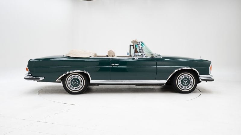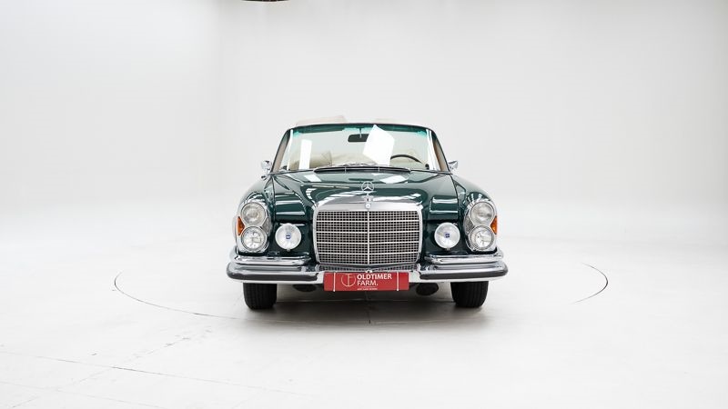Merk: Mercedes-Benz Model: 280 SE Cabriolet Bouwjaar: 1970 Motor: 2.778 cc zes-in-lijn Transmissie: Automatische versnellingsbak Kleur: Green – interieur Beige Kilometerstand: 88.310 (afgelezen) Chassisnummer: 11102512004610 Stuurpositie: Links gestuurd Documenten: Nederlandse inschrijvingsbewijzen