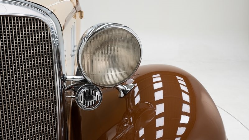 • Zeldzame Chevrolet Master Six Cabriolet uit 1933 • 3.2-liter zescilinder motor (3.179 cc) met manuele versnellingsbak • Goede professionele restauratie uitgevoerd • Elegante cream-brown kleurstelling • Afgelezen kilometerstand van 77.916 km • Belgische inschrijvingspapieren