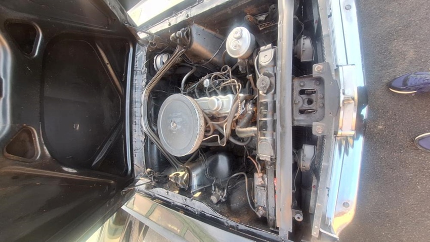 De auto is gedeeltelijk opgemaakt, carrosserie, motor en lak, maar zeker nog meer werk aan om hem rijklaar te maken