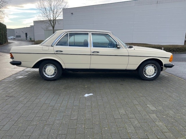 De wagen verkeert in een eerlijke en nette staat en biedt het comfortabele rijgevoel waar de W123 om bekendstaat.