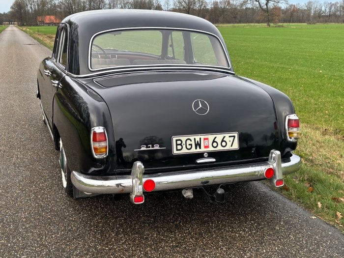Een klassieke Mercedes 219, dit model is bekend als W105, en ook als de “grote Ponton” met 6 cilinder lijnmotor. Op zich zeldzaam, het is een model gepositioneerd tussen de kleinere W120 Ponton serie en de grotere S 220 klasse. De vader van de laatste Zweedse eigenaar kocht de auto in 1963; op dat moment had de auto sinds de bouw in 1959 slechts 1 eigenaar gehad. Sinds de familie de auto kocht, zijn alle bonnen bewaard en is vrijwel elke tankbeurt gedocumenteerd. Elke zomer reisde de familie op vakantie naar de Tornevallei in Zweden en ze maakten ook reizen met de auto naar Nederland en Engeland. Halverwege de jaren tachtig werd een nieuwere auto aangeschaft en de Mercedes stond grotendeels stil in een verwarmde garage. De familie kocht ook een donorauto, die veel van de reserveonderdelen leverde die bij de Mercedes worden meegeleverd. De Mercedes heeft tot enkele weken geleden altijd in Zweden gereden, onlangs is hij naar Nederland geëxporteerd . Documenten: De auto kan tegen meerprijs van 50 euro met Zweedse EU Export documenten worden geleverd, zodat een eventuele buitenlandse nieuwe eigenaar de auto gemakkelijk in zijn/haar land kan registreren Carrosserie: Ergens in de jaren 80 onderging de auto roestreparaties en werd hij opnieuw gespoten. Aluminium binnenschermen werden gemaakt om het risico op nieuwe roestvorming te verminderen en er werd een roestvrijstalen uitlaatsysteem gemonteerd, dat er vandaag de dag nog steeds onder zit. Onderzijde is behoorlijk goed, wel enigszinds vies (zand, de familie woonde aan een zandweg) en is ongetwijfeld verbetering mogelijk. Technisch: In 1995 nam de laatste Zweedse eigenaar het familie-erfstuk over en sindsdien heeft hij er slechts ongeveer 5.000 km mee gereden. De brandstofpomp en radiateur zijn een paar jaar geleden gereviseerd en in 2025 zijn de remschoenen, wielcilinders, hoofdremcilinder en carburateur gereviseerd. De 219 remt prima, stuurt goed, het starten gaat wat aarzelend, maar als hij een beetje op bedrijfstemperatuur is functioneert hij prima. Bij de Mercedes worden diverse dozen met reserveonderdelen, documentatie bestaande uit bonnen en keuringsrapporten (zie foto's) en drie sets sleutels geleverd. Interieur: Na verloop van tijd werd de hemelbekleding lelijk, dus naaide de eigenaar een nieuwe hemelbekleding die nog steeds in de auto zit. Hij installeerde ook oprolbare veiligheidsgordels voor extra veiligheid. Het interieur is netjes, met gebruikssporen. De brandstofmeter werkt een beetje aarzelend. De verkoper heeft vele contacten in binnenland en buitenland, en kan u helpen aan adressen waar eventuele nieuwe / gebruikte onderdelen worden verkocht. Transport: De auto staat in Hengevelde, Nederland en kan hier vanzelfsprekend worden opgehaald. De auto kan tegen meerprijs van 150 euro (excl BTW) binnen Nederland worden bezorgd (excl. De Waddeneilanden) Voor de buitenlandse bieders : Bezorging/transport: Verkoper kan de auto relatief goedkoop in de hele EU laten bezorgen door een professionele transporteur.