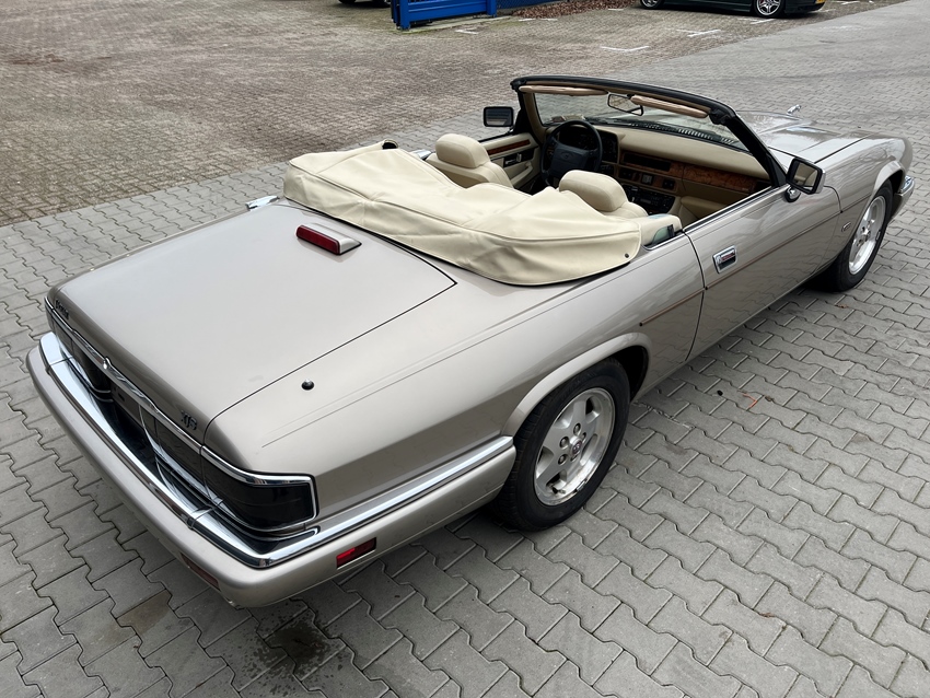 1995 Jaguar XJS 4.0 2+2 Cabriolet in originele kleurstelling Topaz Metallic met Doeskin (crèmekleurig) lederen interieur en zwarte cabriokap.